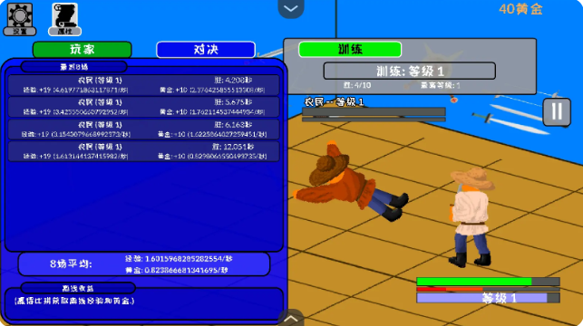 1、选择初始剑斗士后进入关卡,系统自动战斗,击败敌人即可获得金币、经验等关键资源。