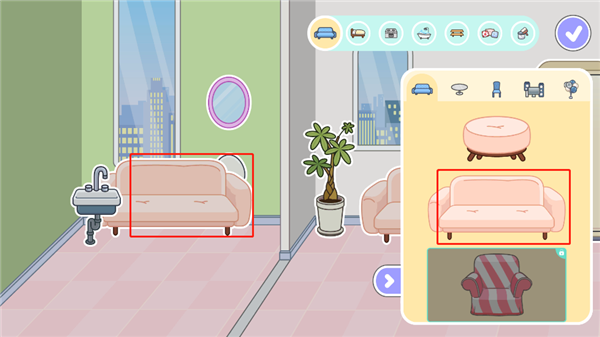 4、系统将为你展示丰富多样的家居物品,包括沙发、餐桌、洗手台、床铺、浴缸等,任你挑选心仪款式;