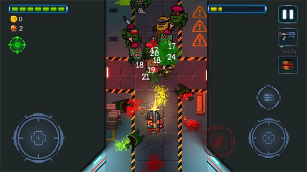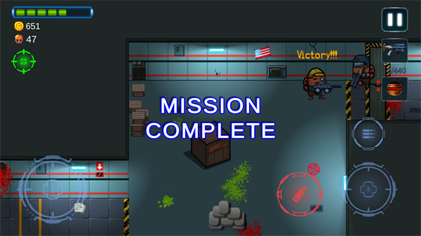3、进入关卡后,屏幕左侧区域用于控制角色移动,右侧则负责瞄准与射击,操作响应灵敏,上手毫无压力。