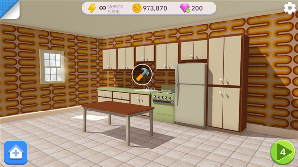 6. 游戏中已积累大量客户委托任务。为保证专注度,系统设定每次只能进行一项改造工程。助手朱莉娅会提前准备好设计草图,你只需通过三消关卡积攒足够金币,即可一键购买她精选的家具、装饰、壁纸、地板等物品,快速完成焕新。