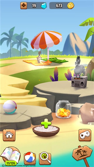 除了看广告,稀有动物造访沙滩后离开时,也会留下钻石作为奖励。因此,积极吸引珍稀动物不仅能丰富图鉴,还能额外获得宝贵资源。