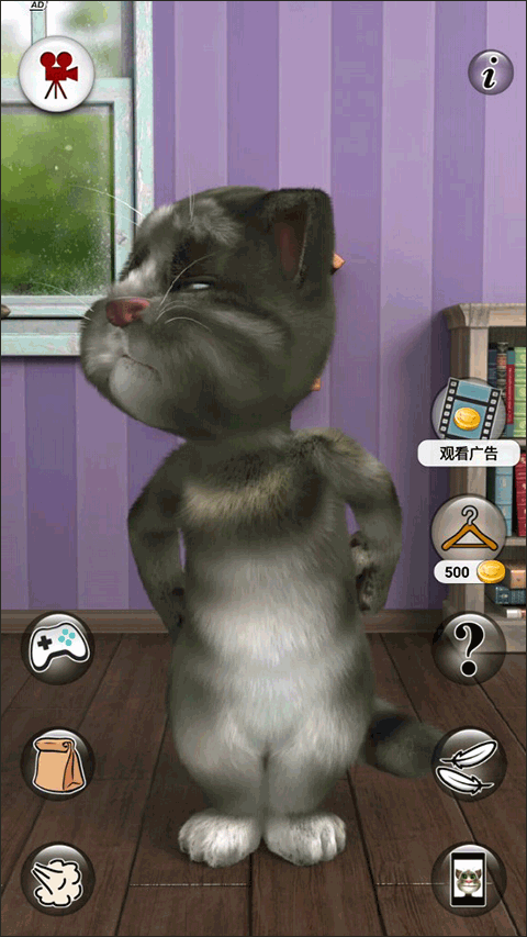 1、轻戳汤姆猫的头部,它会做出被打的样子;连续点击多次,它甚至会倒下,此时背景中的钟表会弹出一只小鸟(偶尔还会喷火!),随后狗狗本会用玩具枪把小鸟打跑,并用水泼醒汤姆。