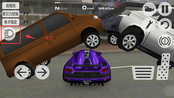 2、右侧设有油门与刹车按钮,精准操作是赢得比赛的关键。
