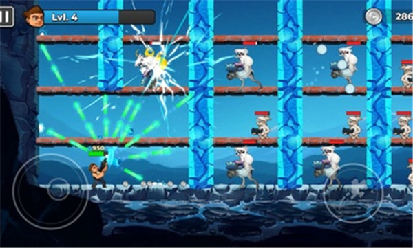 3、左手滑动控制移动,同时右手向上滑动,让角色跳跃以躲避障碍或攻击敌人。