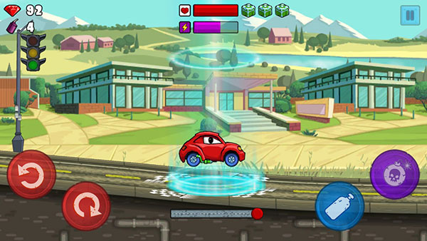 6、在闯关过程中尽可能收集金币,用于提升赛车速度、操控或防御等关键性能,最终顺利抵达传送口。