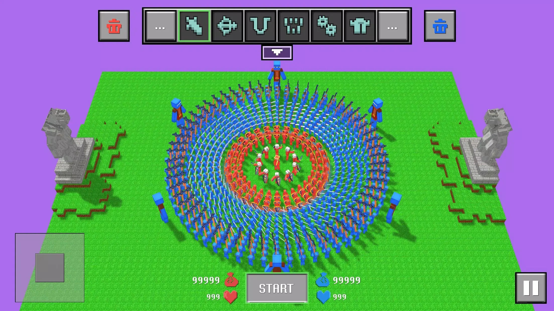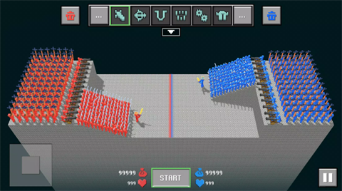布娃娃战争模拟器是一款基于物理引擎的策略对战游戏,你将担任红蓝两方块状布娃娃军队的指挥官,指挥他们在滑稽又混乱的战场上一决高下。