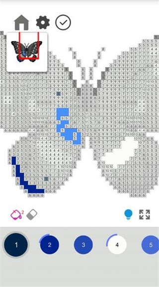 2. 根据图案上的数字提示,选择对应的颜料填充区域。