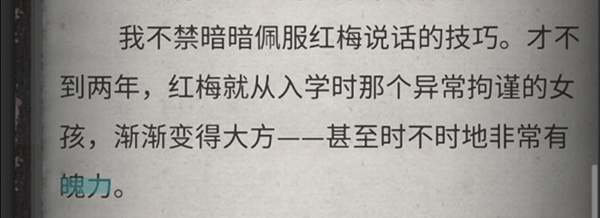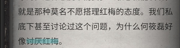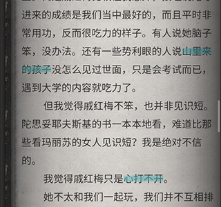 7、闺蜜:主角对红梅心存不满,并提及一位神秘的男朋友。