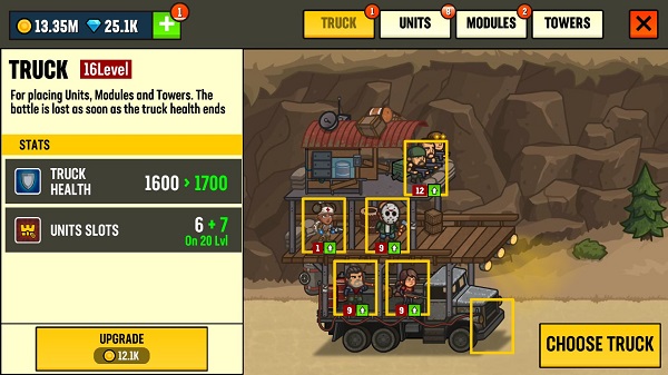 3、玩家可通过“TRUCK”系统升级卡车,不仅能提升英雄等级,还能解锁更多卡车位置,让你部署更多强力单位上阵作战。