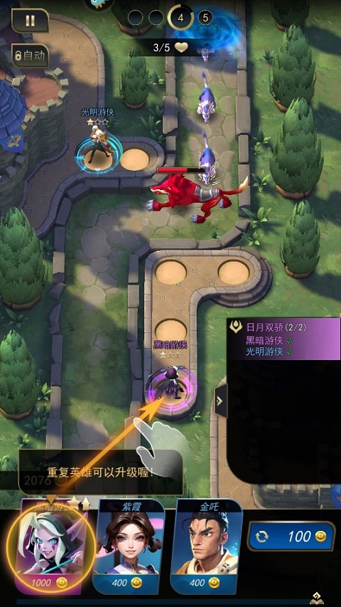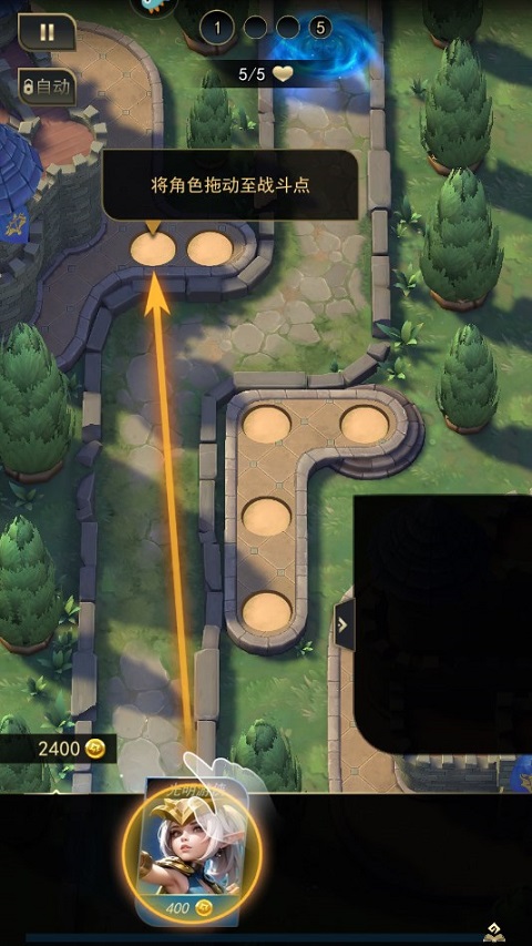 1. 开局时,玩家可拖动底部的英雄卡牌,将其放置到战斗点位上,阻止怪物前进!