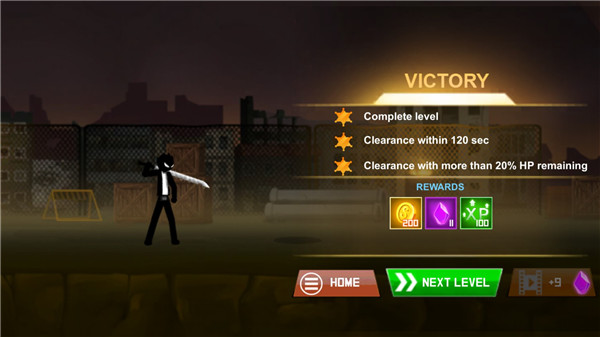 1、丰富的闯关内容,逐步解锁不同类型的火柴人角色,搭配华丽炫目的技能招式;