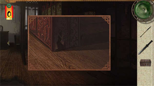 1、在房间床脚处找到床头抽屉的钥匙,用钥匙打开两个抽屉。其中一个抽屉内藏有木盒缺失的开关,另一个则放着半张面具。