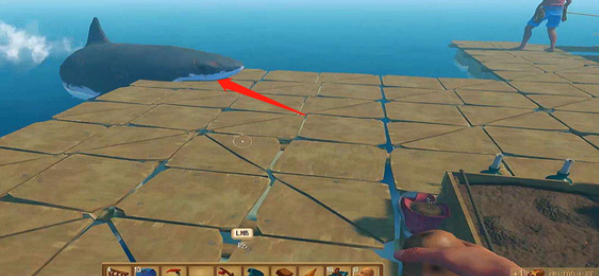 4、警惕潜伏在水下的鲨鱼,它们会主动攻击木筏和玩家