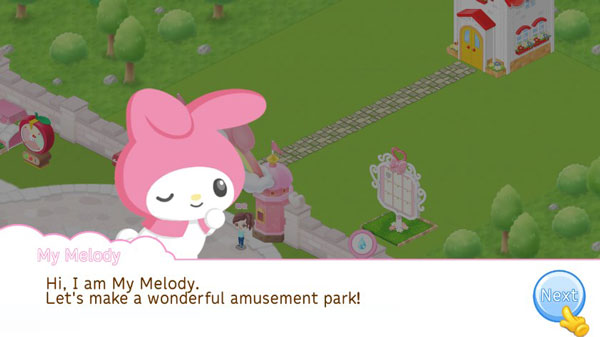 3、跟凯蒂猫一起来建造一个精彩的游乐园吧,点击下一步继续