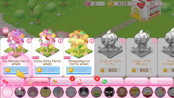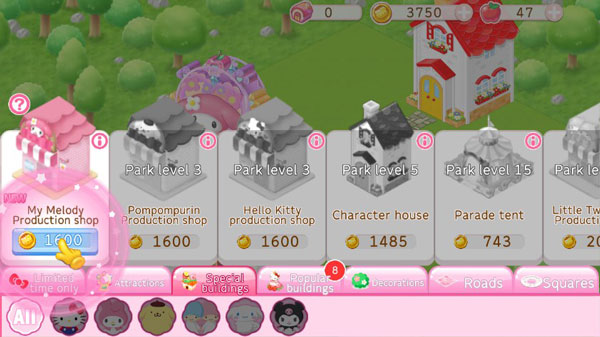 游戏中集结了众多三丽鸥人气角色,包括凯蒂猫、我的旋律、蓬蓬布林、琪琪与拉拉、黑桃与肉桂等!更有更多经典角色将陆续登场,陪伴你一起建设乐园。