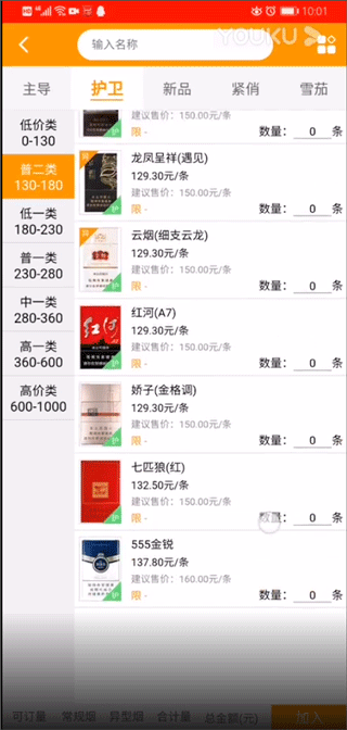 2. 选择所需香烟品种及数量,确认后完成支付即可。