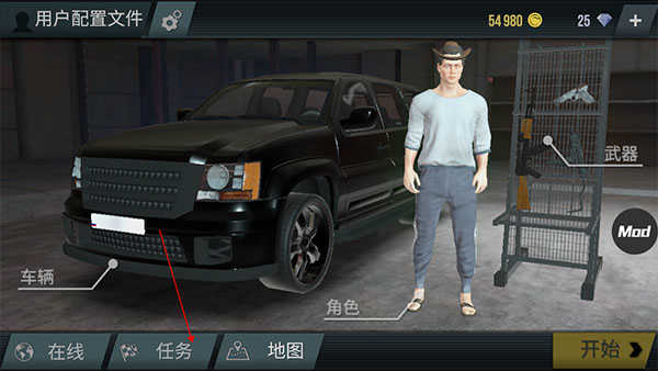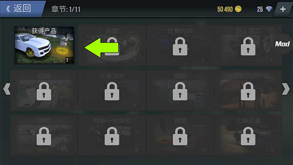 2、进入赛车模式后,屏幕中央会出现一辆大型载具。将视角滑动至右侧可解锁新车,点击车辆下方的“开始”按钮即可进入比赛。
