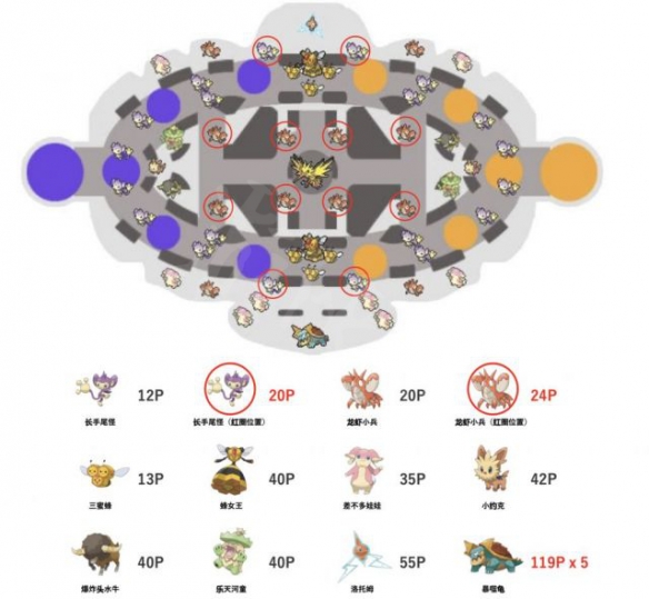 地图上路和下路的野生宝可梦分布是完全不同的,对应分值也不一样。由于大集结中没有兵线的机制,这些野生宝可梦就变得非常重要了。经过我的观察,上路的资源比较紧张,初期会有大量的对抗;而下路的资源相对充足,还有会掉落神奇糖果的礼物盒,可以安心提升等级。开局之后会有一个小光标箭头推荐你路线,不知道该怎么办的时候就跟着走吧。