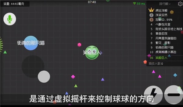 攻略四:围攻,当你体积足够大时,跑得也慢,很难吃到小球,这时可以和别人联合围攻一个球,注意自己不要被比你更大的球吃掉哦。
