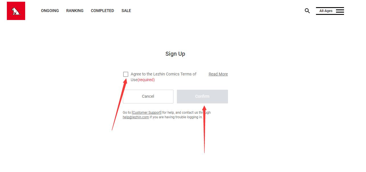 1、首先,你得有一个账户,lezhin非韩国ip不需要成人认证,不需要tz。