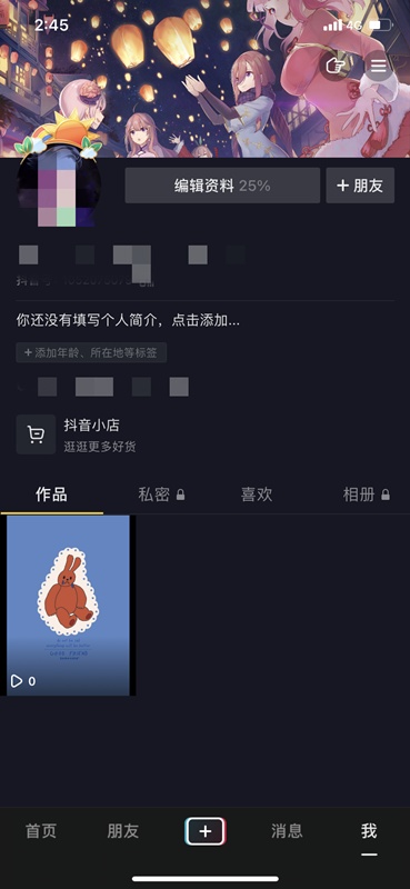 1、进入自己的抖音个人主页,找到你想删除的作品;