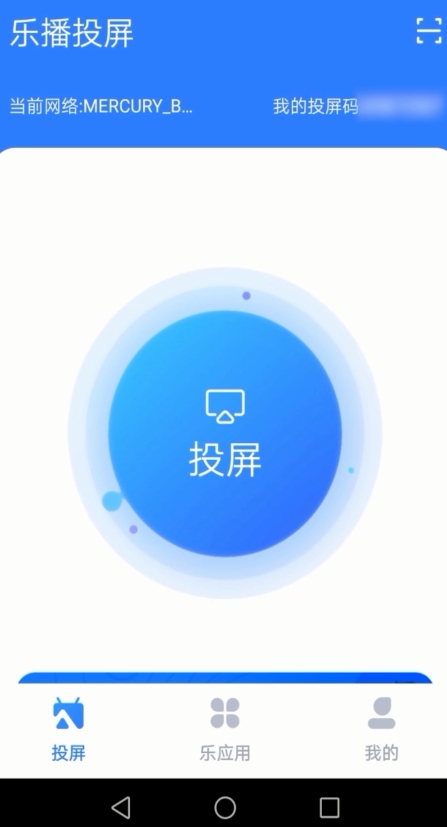 确保手机与电视已连接同一网络,打开乐播投屏应用界面: