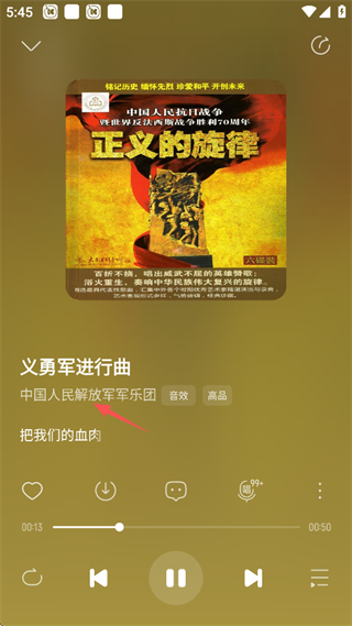 3.点击屏幕左侧的“歌曲名”下面的“歌手名”。