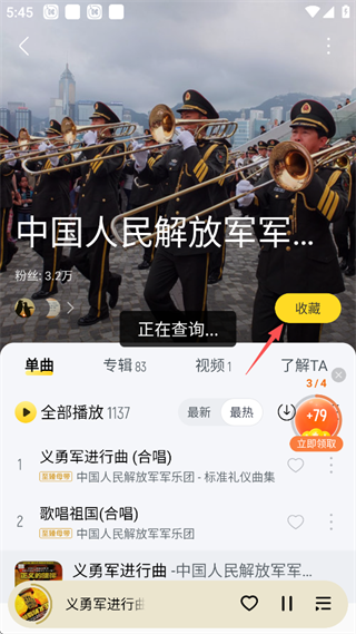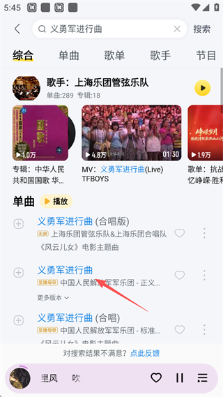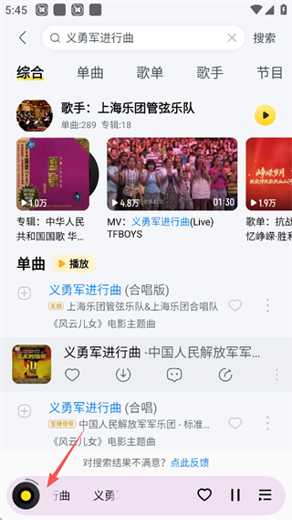1.点击需要关注的歌手的歌曲,也可以通过点击屏幕上方的搜索框直接搜索歌手。