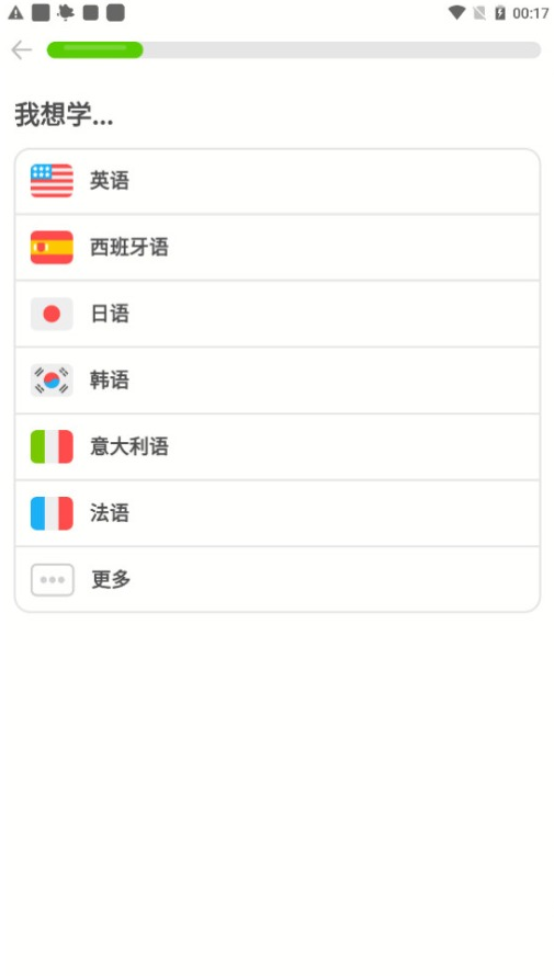 想感受同一时间学习多种语言的挑战感吗?点击在多邻国左上角的国旗图标,然后在下拉菜单中选择你想学习的另外一门语言。添加新的语言是不会让你丢失现在已有语言进度的哦。