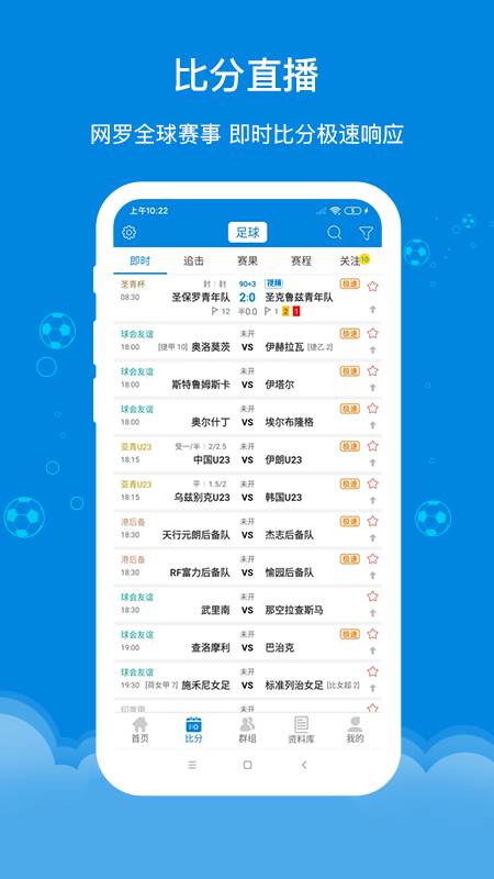 当天比赛实时比分,足球/篮球联赛比分数据同步更新;