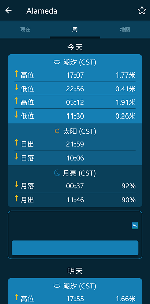 4.免费潮汐数据升级至7天.全新设计的APP界面,深度优化了交互体验.新增水温/涌浪/海平面高度数据.无需创建即可直接查看任意地点的潮汐天气数据
