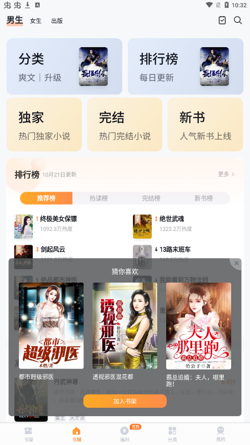 个性化专属定制书籍,为你精心推荐,不错过任何热门小说,从此告别书荒。