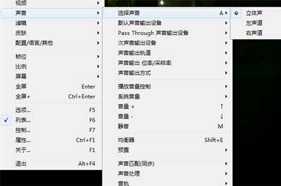 6、若有些视频有多个音轨,你可以在右键【声音】——【选择声音】菜单中选择对应的音轨;