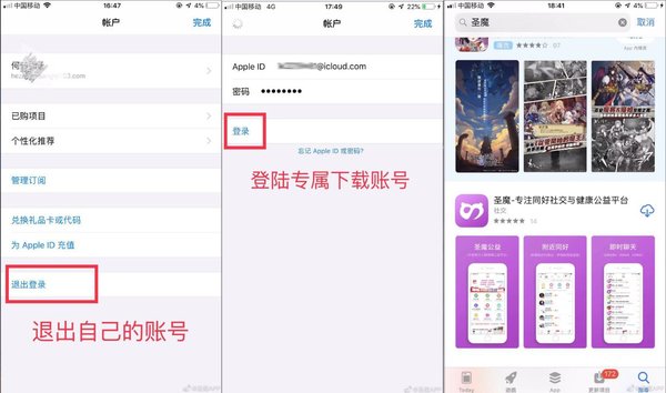 步骤2:在“苹果商店App Store”登录下方账号(切勿在手机设置里登录):