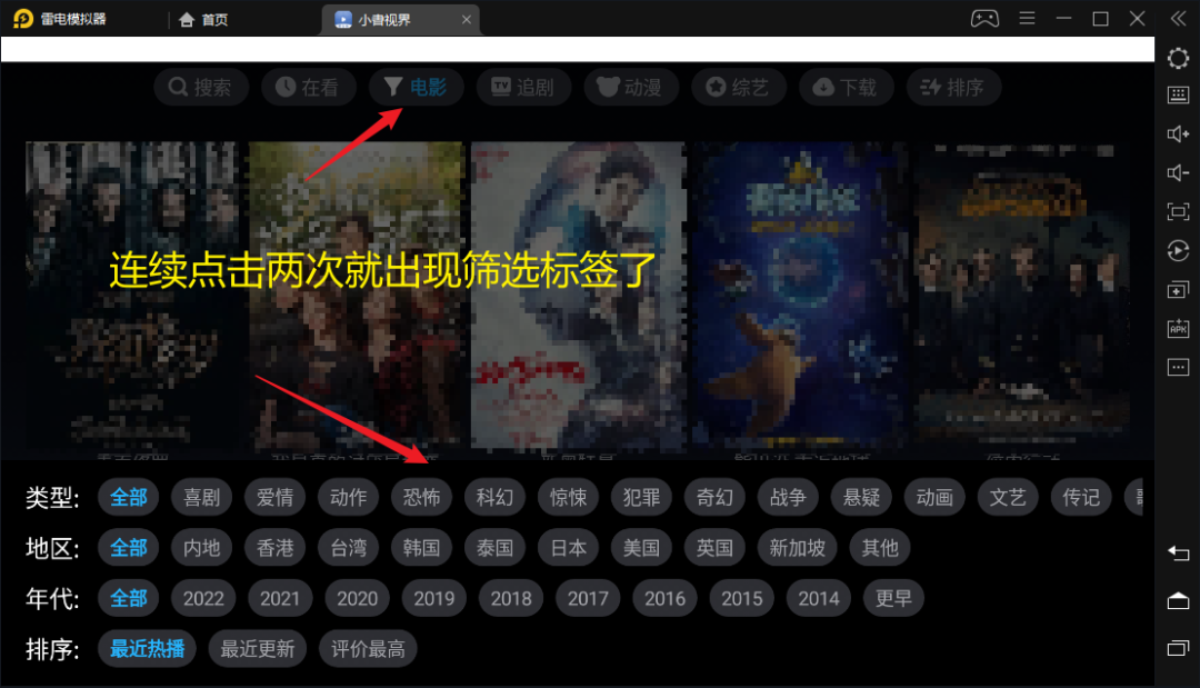 该软件有个隐藏功能,点击两下上方的分类标签,即可弹出筛选菜单,非常的详细,方便选择想看的资源。