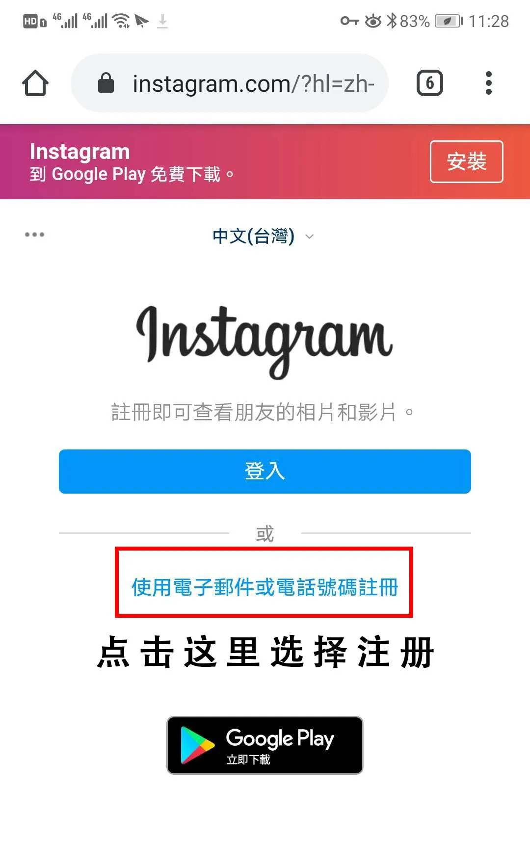 第三步:打开浏览器,进入谷歌官网(www.google.com)搜索Instagram官网进入注册(推荐官网注册的原因是因为,在软件内注册常常无法接收手机验证码)