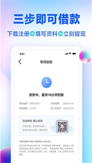 2、【放款效率】10分钟申请,3分钟到账,98%超高通过率。