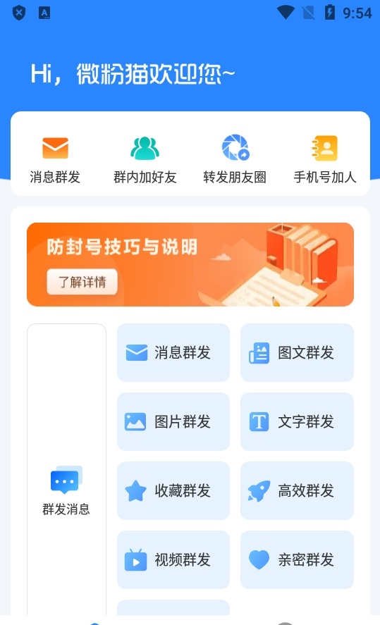4、微粉猫APP的消息群发功能可以帮助你快速向目标客户发送推广信息。你可以选择合适的群发对象,编辑好要发送的内容,然后一键发送。