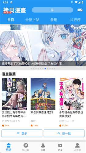 1.在本站下载安装拷贝漫画2.3.2版本并打开,进入首页后您可以浏览到精选漫画推荐。