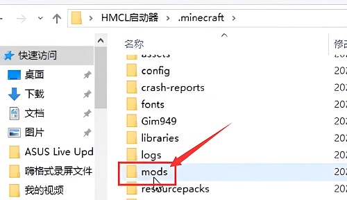 4.安装完成以后,再进入到本地系统的“.Minecraft”文件夹里面的mods文件夹,注意手机和电脑的文件夹安装路径是一样的。