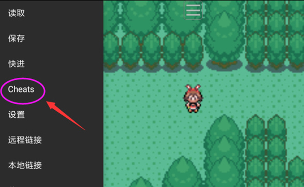 1、在手机上打开gba模拟器安卓版,运行游戏后,点击如下图标,选择Cheats