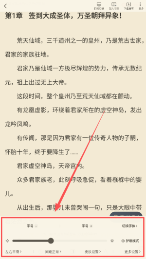 4、阅读设置选项允许用户自由调整界面背景和字体样式,打造最符合个人喜好的阅读环境,让您畅享无阻阅读乐趣。