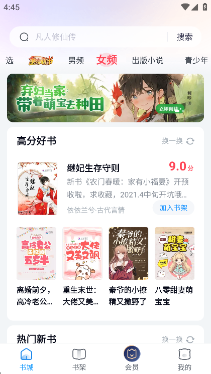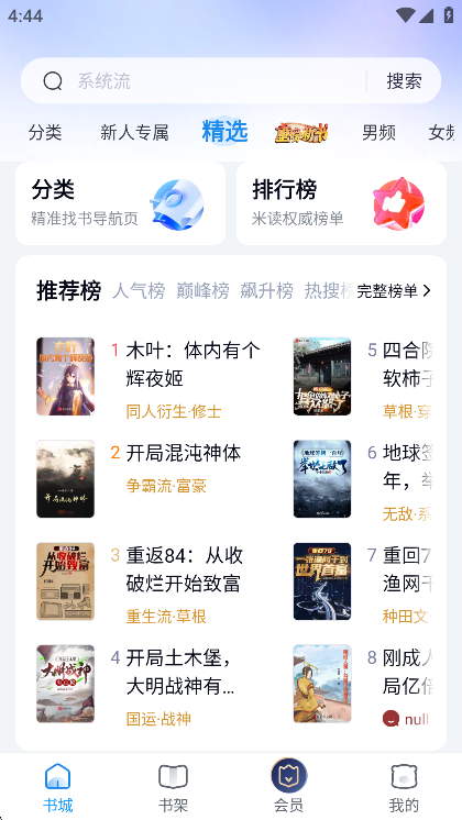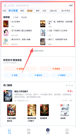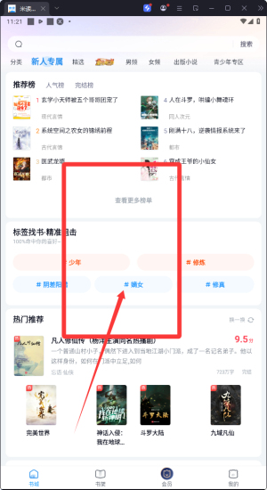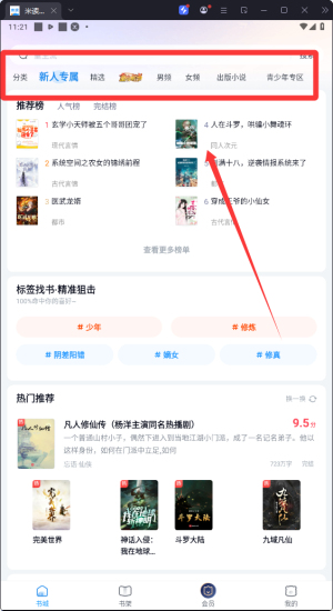 3、【精选书籍】女频、男频、出版、免费小说任意看;