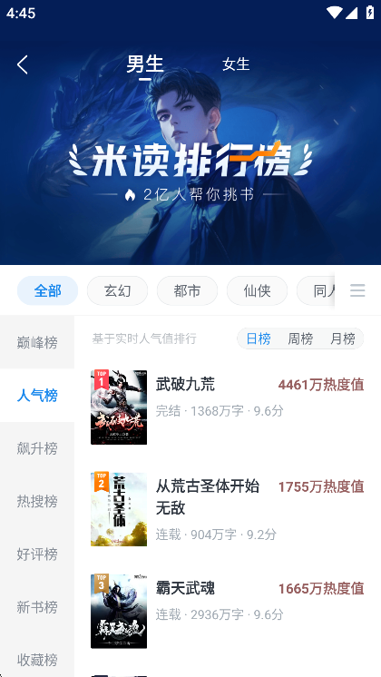 4、【海量书库】原创女生、原创男生、现代言情任意选择;