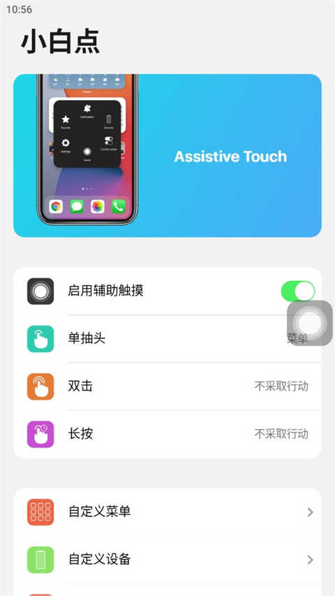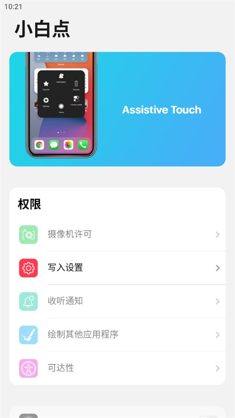 7、权限都打开后点击启动辅助触摸,即可启动“小白点”。