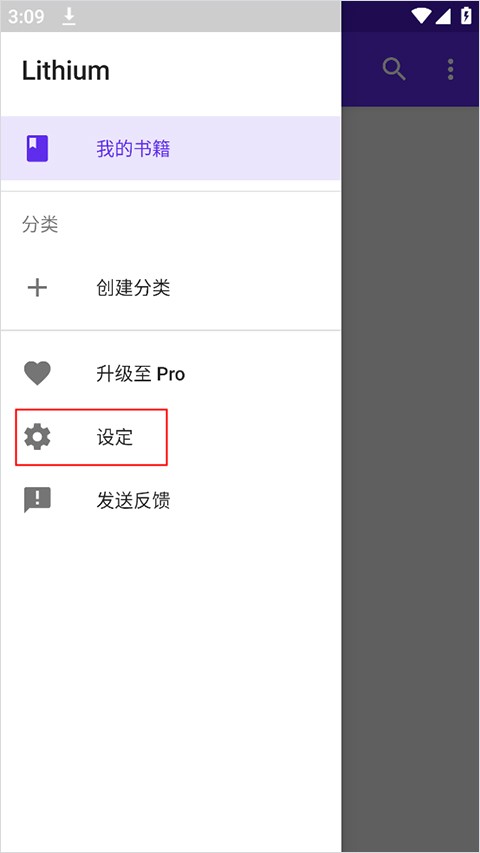 1、安装并打开Lithium阅读器,点击左侧三条杠按钮