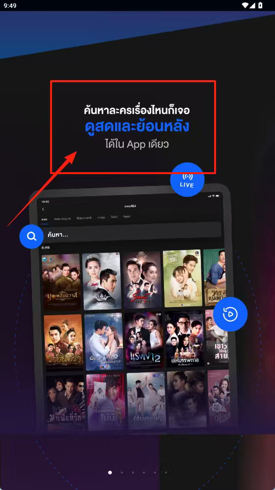 1、点首页搜索框找剧,看直播回放都行,还能刷新页面更新内容。