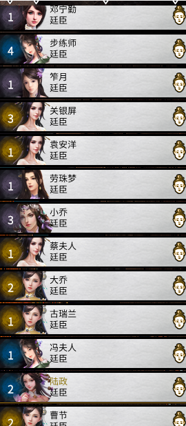 第二回合 甄宓 王元姬 张春华 辛宪英 蔡文姬 步练师 笮月 关银屏 袁安阳 大小乔 董佩珊 貂蝉 黄月英.....等等来投奔
