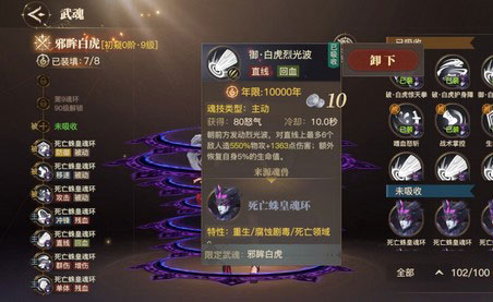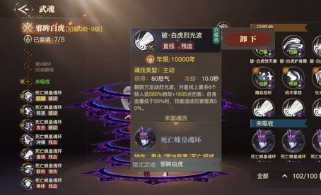 我们不难看邪眸白虎的技能“白虎裂光波”是一种支线AOE输出技能,标准版的最为稳定,适合装备给那些高等级的魂师使用,可以最大限度发挥百分比物攻的伤害特性。