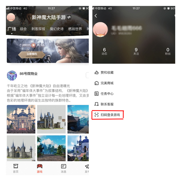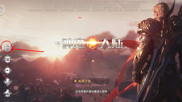 手机端游戏扫码登录入口。打开《新神魔大陆》手游后主界面会有显示,如下图图6所示